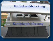 Die Abdeckund verhindert, dass Regenwasser in den Kaminzug läuft, die Einfassung schützt den Schornstein ansich