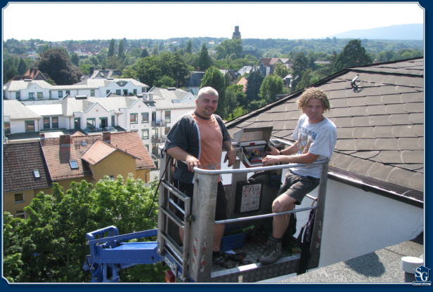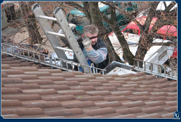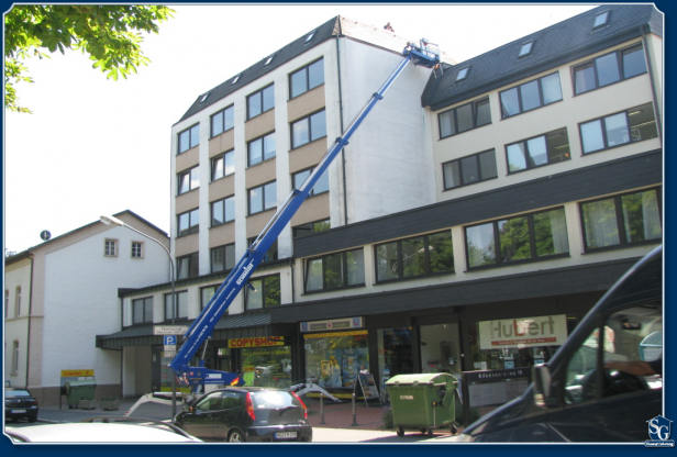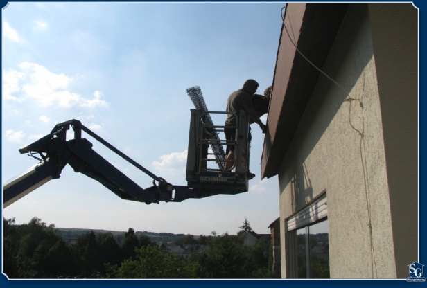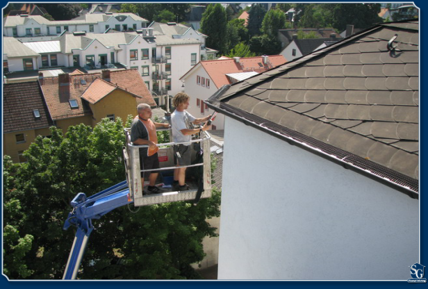 Ob mit der Leiter, der Hebebühne oder mit einem Gerüst: Wir montieren Ihre Laubstopsystem in jeder Höhe
