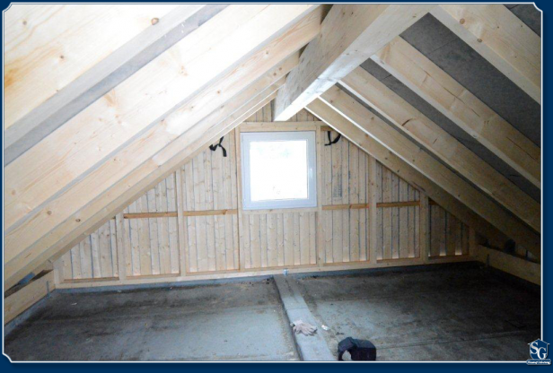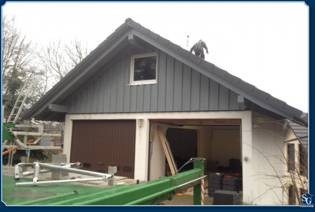Das Dach wird in der Halle vorgefertigt (dadurch sind wir nicht wetterabhängig) und mit dem Kran montiert.