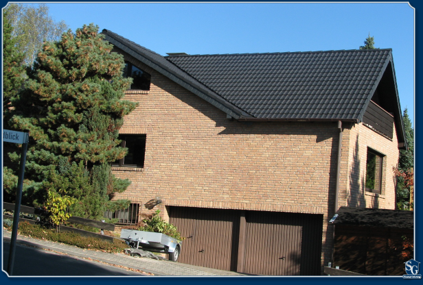 Edelschwarz ohne Lichtspiegelung: Optisch ein guter Kontrast zu der Klinkerfassade