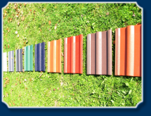 v.l.n.r.: Kieselgrau, anthrazit, edelschwarz, moosgrün, dachblau, ziegelrot, classic rot, dunkelbraun, rotbraun