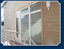 Die Haustür ist natürlich aus Aluminium und schließt sich übergangslos an die Festverglasung an, die wiederum aus Kunststoff sehr viel günstiger ist