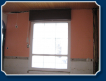 Auch das Fenster wurde durch ein Schallschutzfenster mit 3fach Verglasung und Satinatoglas (Milchglas - hier außen blau) ausgetauscht