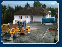 Tag 11: Die Perimeterdämmung, Drainage und Abdichtung sind fertig. Der Unterbau der Parkflächen auch und mit dem Vollwärmeschutz wurde begonnen.