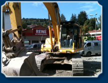 Insofern sich der Transport lohnt, können wir auch mit größeren Baumaschinen arbeiten