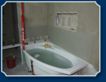 Nachdem Bodenaufbau, den Installationsarbeiten, dem Trockenbau und dem Innenputz werden die Sanitärobjekte vorbereitet