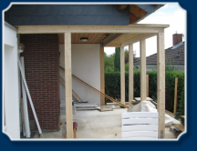 Preislich am besten geeignet ist eine Holzkonstruktion, die wir später von außen mit farbigem Aluminium verblenden können