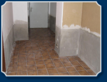 ...wurde ein Sanierputz aufgebracht, der die Restfeuchtigkeit aufnimmt und in den Raum abgibt